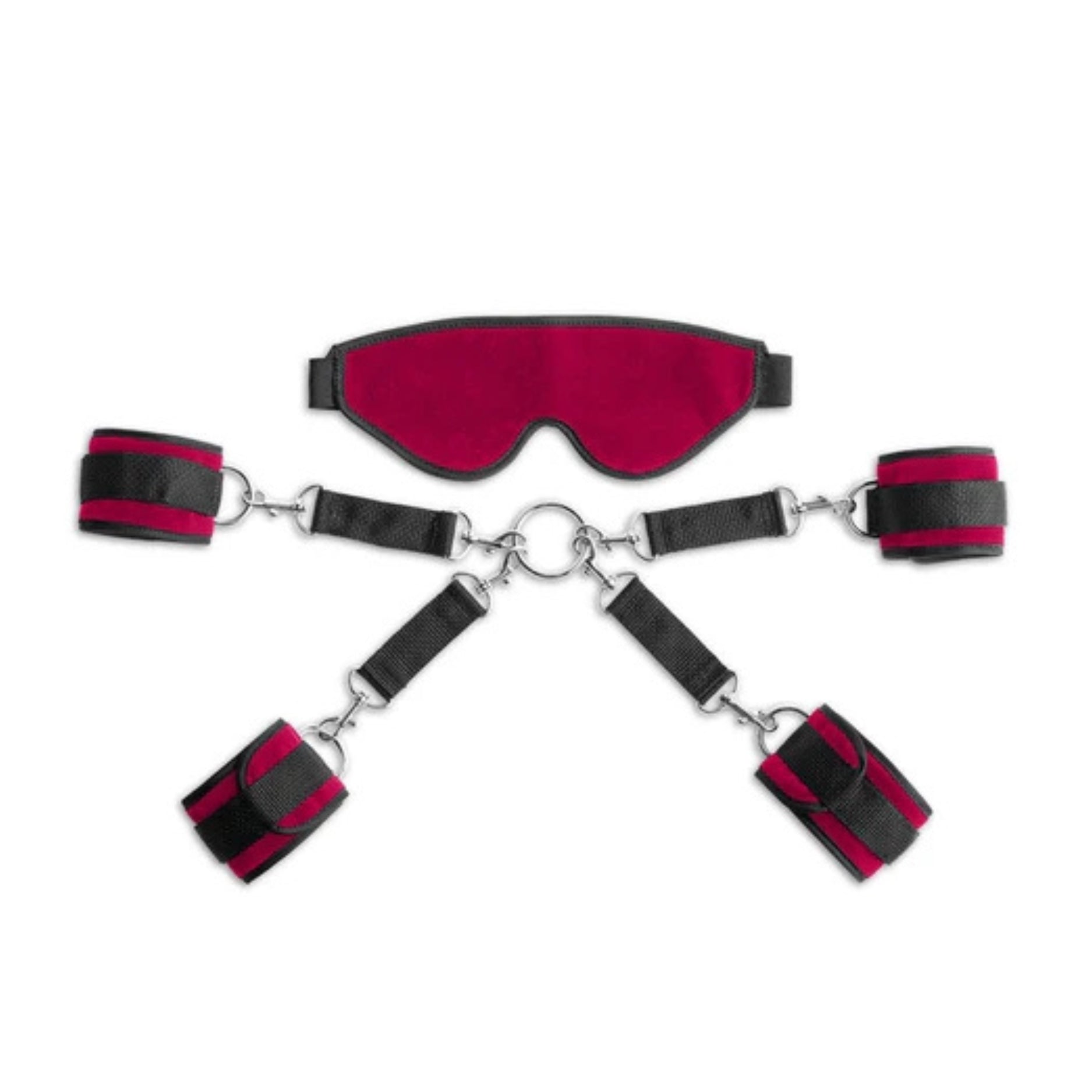 - Includes blindfold, one pair of wrist & ankle cuffs