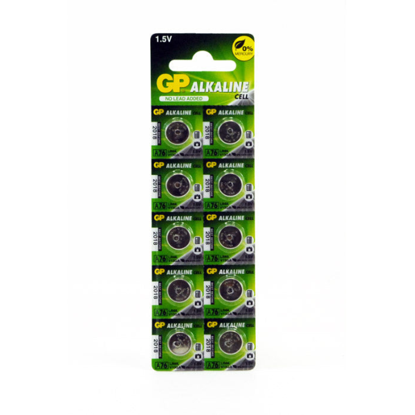 10 Pack of GP Super Alkaline A76/LR44 watch/calculator battery. For use with Eros Ring,Fukuoku,Busy Bee, mini vibes and other smaller vibe units that use the A76/LR44 size battery. This is the highest quality battery for its size. Specs: Alkaline 1.5V 150mAh button cell battery. Batteries now include Enviornmental Handling Fee.